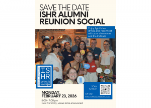 Join HRSMA, UHRP, and HRAP practitioners, for an opportunity to connect post-break and meet the 2026 cohort early in the term. You're also welcome to grab lunch and pop into the ISHR department offices (316A, 316B, and 316C) to ask questions.
